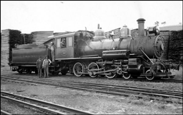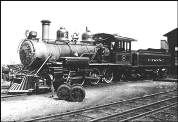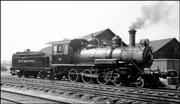 Number 5 was built new for the ET&WNC in 1903, and was sold to the Linville River Railway in 1919. By the time this picture was taken circa 1915, she had been outfitted with a steel cab, smoke-box handrail, and two babies.
