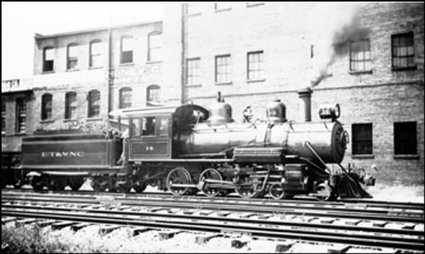 Number 14 is parked in front of the Johnson City engine house in 1941. An oval of letters spelling ET&WNC RAILROAD was added to the Clarence Hobbs paint scheme in 1938, creating a distinctive look. No. 14 was also sold to the War Department for use in Alaska during World War II. Unfortunately, it was destroyed in the same fire that consumed No. 10 in 1943, and was scrapped in 1945.