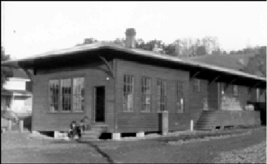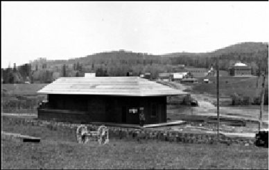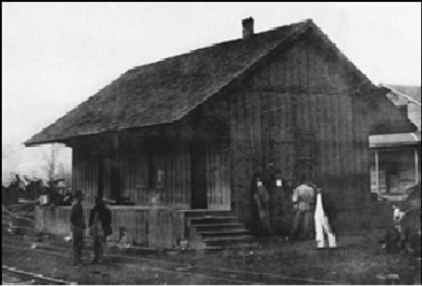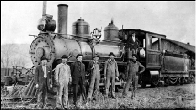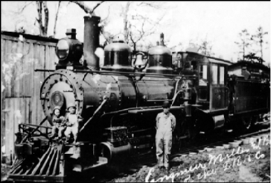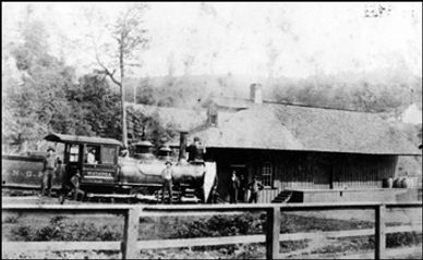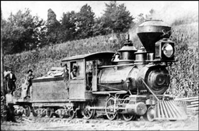 Locomotive Number 1, also known as the Watauga, sits in front of the Cranberry depot around 1895. This engine served the railroad until 1911.