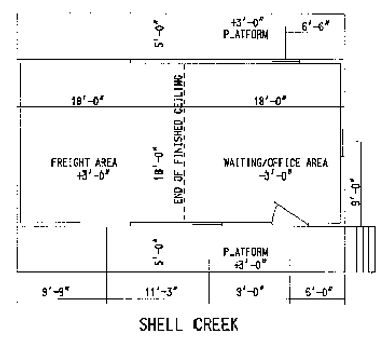 Dozens of detailed drawings like the one of Shell Creek (above) are included in this must-have book. In some locations like Hampton, where two distinct buildings stood, both floorplans, as well as their dates of service are included for the historian and modeler alike.
