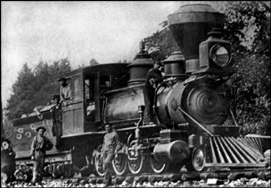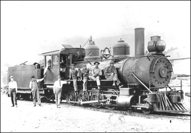 Locomotive No. 2, affectionately known as the Cranberry, is shown at Shell Creek around 1882, and is only a year old. George Allison Collection.
